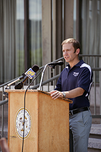 Dr. Olenchock of St. Luke's University Health Network addresses the crowd during the press conference.