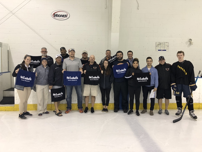 St Luke’s Sports Medicine staff and faculty members from Moravian College’s Athletic Training Program teamed up to provide coaches from the Phantoms Youth Hockey Coaching Staff with essential skills needed to manage on-ice emergencies. The training included presentations on first aid, concussions, sudden cardiac arrest and emergency action planning. St. Luke’s Sports Medicine and their partners continue to address the need for training of youth sport coaches and parents. Together we are improving the level of care for all athletes. St. Luke’s is the official Sports Medicine provider of Phantoms Youth Hockey and the region’s leading provider of Sports Medicine.