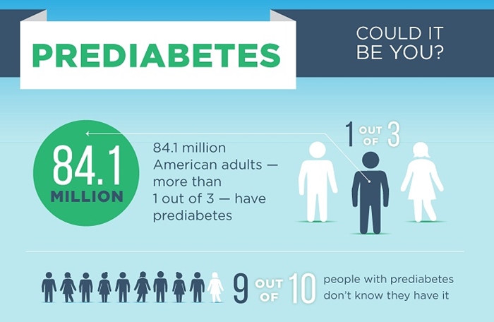 In 2015, an estimated 33.9% of U.S. adults aged 18 years or older (84.1 million people) had prediabetes based on their fasting glucose or HbA1c level. Additionally, an estimated 30.3 million people have diabetes (9.4% of the U.S. population), which includes 23.1 million diagnosed cases and 7.2 million undiagnosed individuals.