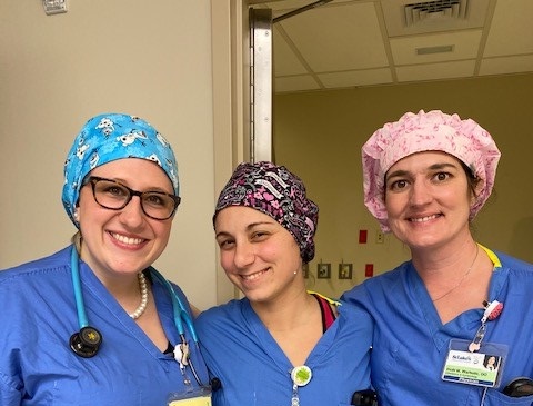 Delivery team of Emma & Emelia Oskowitz: Dr. Holli Warholic (right) with residents Dr. Lisa Meringer and Dr. Shannon Theobald.