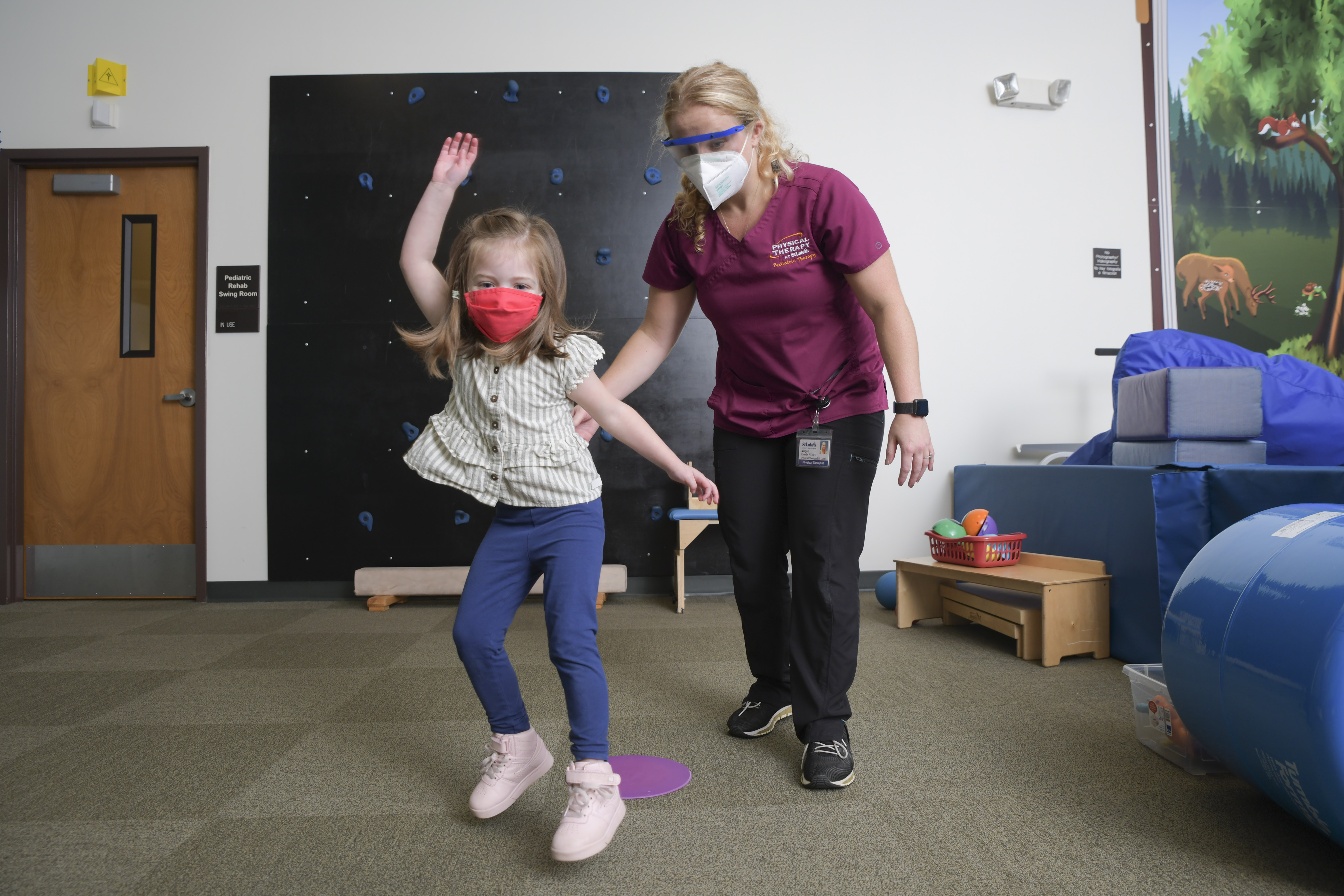 Peyton Hall with St. Luke’s Physical Therapist Megan Zanette.