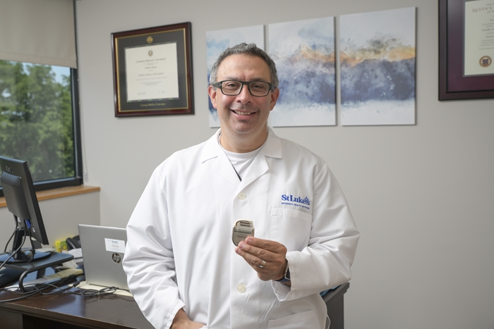 Chief of Neurosurgery, Doron Rabin, MD, holding the newly FDA-approved Medtronic VANTA SCS Recharge-Free Spinal Cord Stimulator.