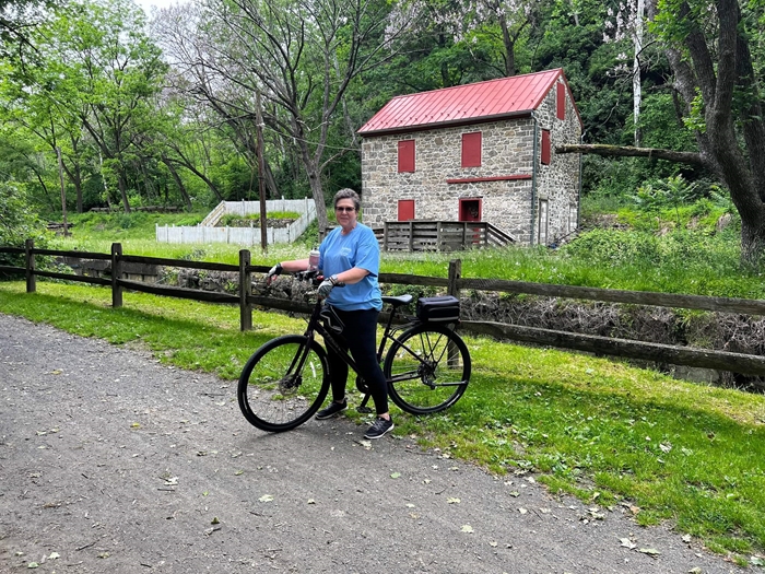 Briggs is partial to biking the 6-mile round-trip stretch on the D&L between Bethlehem’s Sand Island and Freemansburg. “It’s flat and beautiful,” she says. She admits she’ll go to the gym or use her cycle trainer at home in bad weather, but she continues to ride at least three days a week.