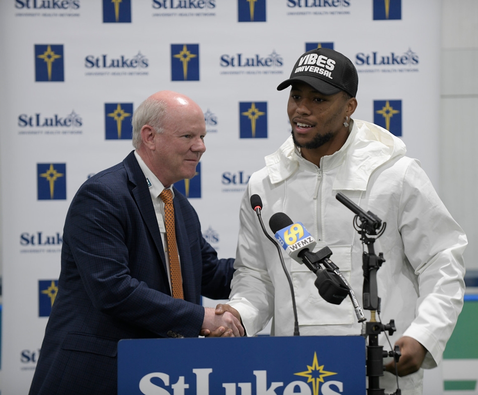 St. Luke’s University Health Network and the Michael Ann & Saquon Barkley Hope Foundation are proud to announce today an historic partnership between the two organizations – Saquon Barkley’s first hometown charitable endeavor.
