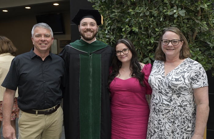 The Merkert Family at Brandon’s graduation from Temple/St. Luke’s. Left to right: father, Bill; Brandon; sister, Kristin; and mother, Cheryl.