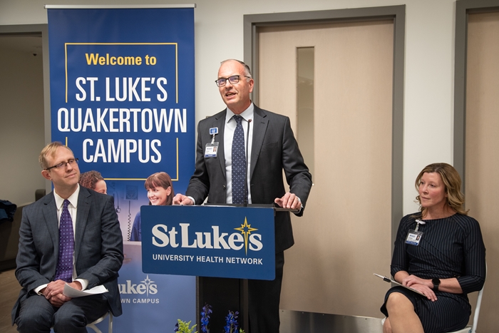 Dennis Pfleiger, President of St. Luke’s Quakertown/Upper Bucks campuses, speaks at the ribbon cutting.