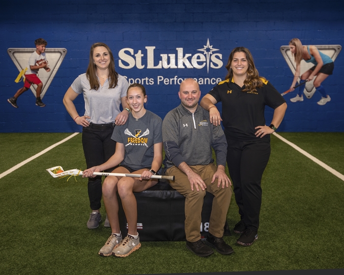 From left: Jillian Hall (Sports Medicine Coordinator and Director of St. Luke’s Return to Play Program), Paige Telatovich (lacrosse athlete from Freedom High School), Gregory Colvin (St. Luke’s Physical Therapist), Brianna Frable (Athletic Trainer for Freedom High School).