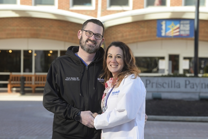 Erin Smith, DO, and Chuck Bendas, MD, were the targets of the mythical god of love that day in 2010. Now they’re married and living in Center Valley and about to celebrate their 10th year of marriage and 13th years with St. Luke’s: Erin Bendas, DO, is chief of Palliative & Supportive Medicine; Chuck Bendas, MD, is a trauma/surgical critical care physician.