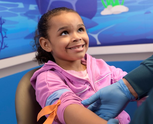 Elizabeth Taylor, Network Director of Outpatient Lab Services, says: “Our pediatric specialty lab locations have been designed to give our younger patients something distracting to look at during their lab work and have some fun after. Our phlebotomists at these sites also have new resources to use to help make this a ‘wow,’ not ‘ow’ experience including distraction tools, Buzzy or Lady Buzzy gadgets that have ‘special’ powers, and reward items. All of this is intended to help make our younger patients and their families feel even more comfortable with getting their lab work done.”