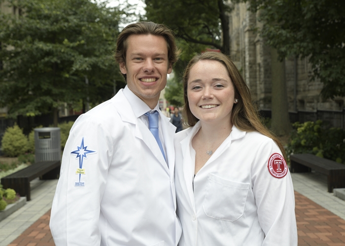 Neither Abigail Sheridan nor Keith Grega, who received their white coats Friday, took the direct route from college to Temple/St. Luke’s School of Medicine, which they both entered this month.