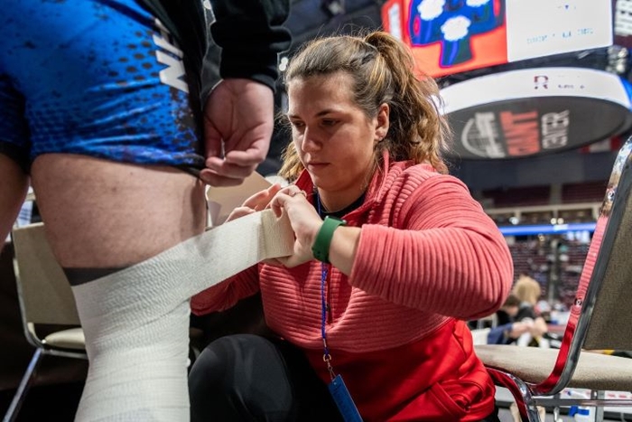 “You see athletic trainers at pro football games maybe handing out a water bottle or taping an ankle, but there is so much more that we do,” she said. “We are present from preseason training through practices and games. We are preparing our athletes to participate, helping them rehab injuries with return-to-play protocols, and even important things like monitoring heat conditions and weather conditions.”